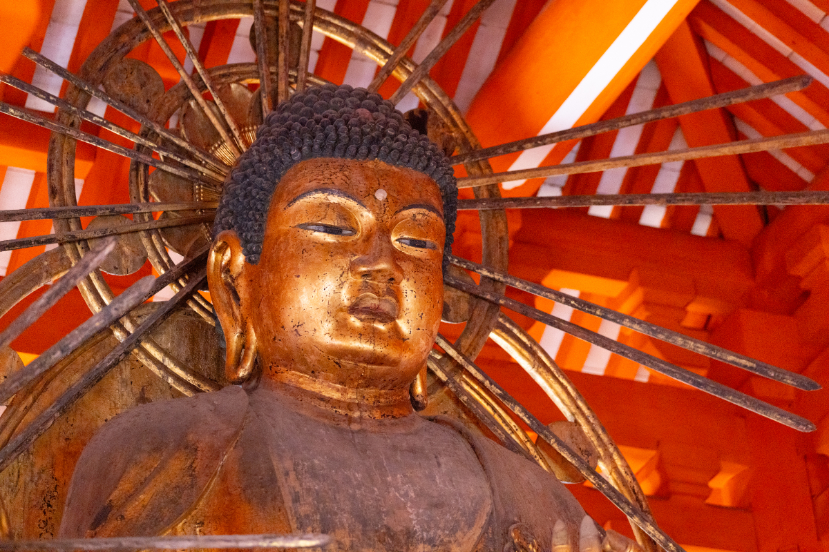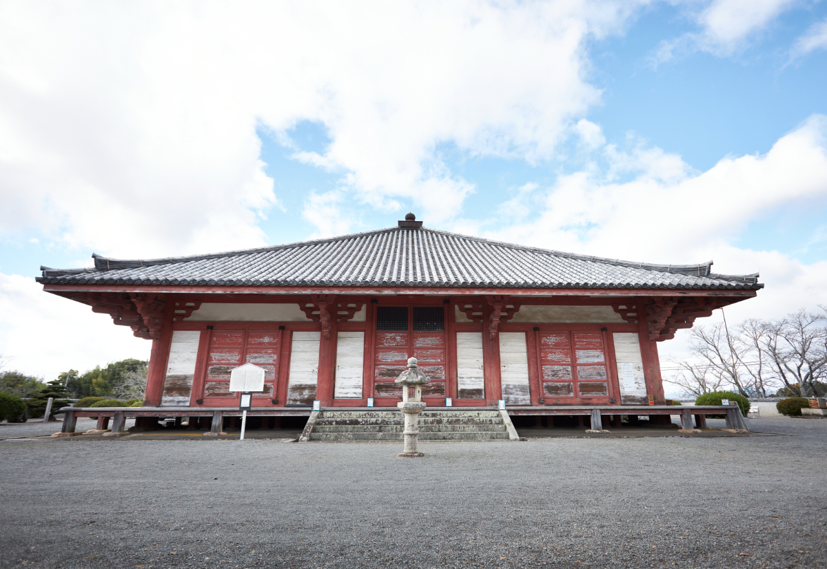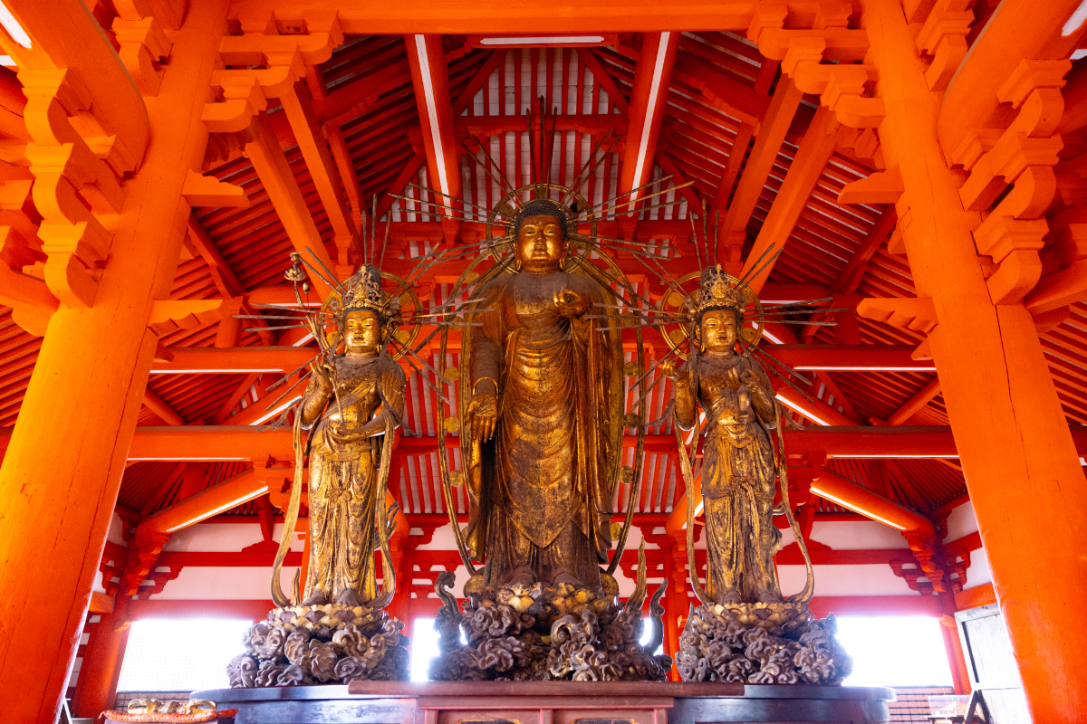 堂内には、有名な仏師「快慶(かいけい)」による木造の阿弥陀如来像(あみだにょらいぞう)が安置されています。こちらも浄土堂(じょうどどう)と同じく国宝です。